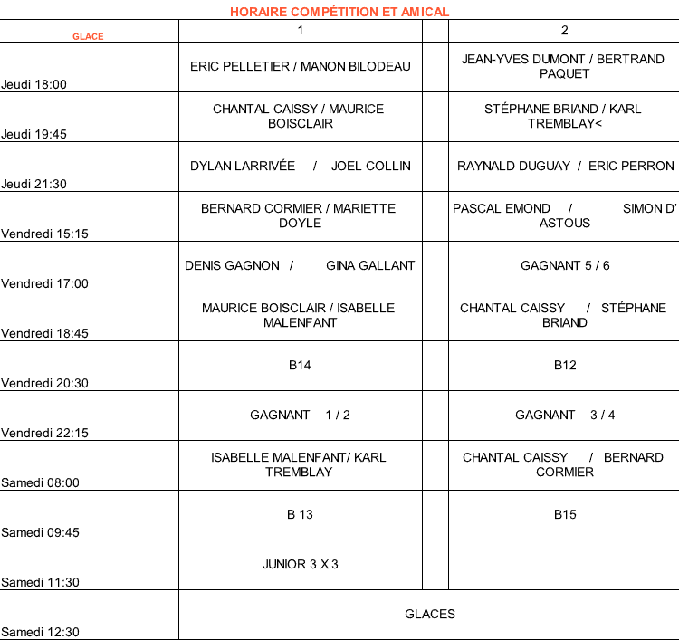 Horaire tournoi fermeture